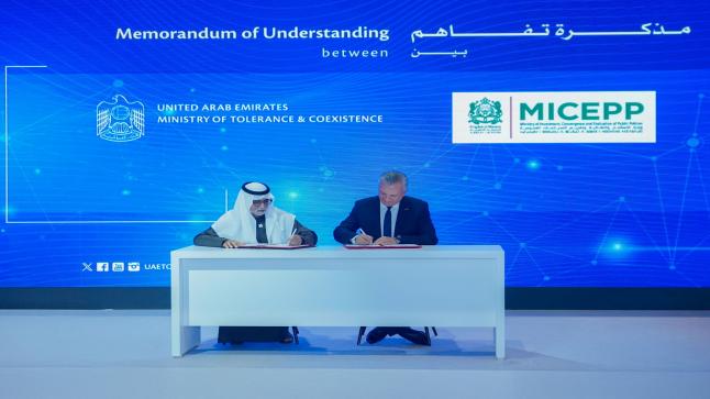 ووقع معالي الشيخ نهيان بن مبارك آل نهيان، مذكرات تفاهم بين وزارة التسامح والتعايش ووزارة الاستثمار والتقارب والبيئة للسياسات العمومية في المغرب التي وقع عنها معالي الوزير كريم زيدان، ومع المركز الدولي لريادة الأعمال والابتكار في البحرين الذي مثله معالي الشيخ إبراهيم بن خليفة آل خليفة، فيما وقعت سعادة عفراء الصابري، مدير عام وزارة التسامح والتعايش، مذكرة تفاهم مع الوكالة الدولية للطاقة المتجددة (IRENA).